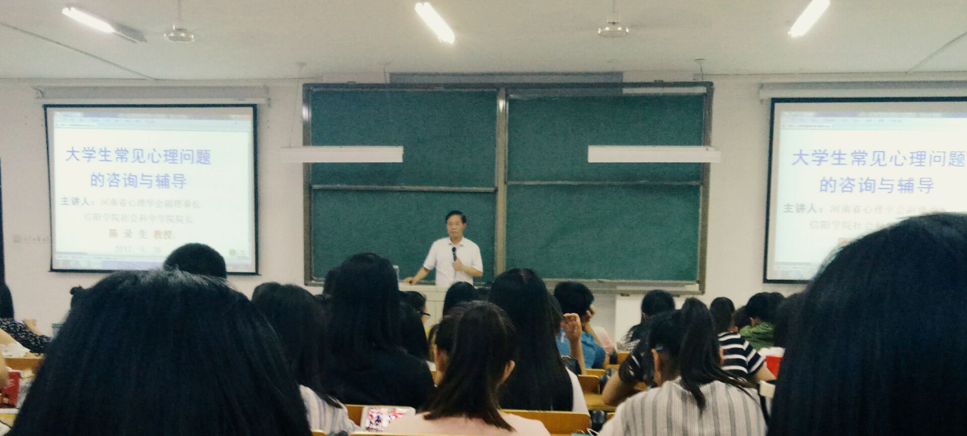 5月26日晚,学生工作处、大学生心理健康辅导中心特邀我校心理专家、社会科学学院院长陈录生教授做了题为《大学生常见心理问题与原因分析》的心理健康教育专题讲座。各学院心理健康部成员、全体心理委员、心理助理团、心桥心理协会共计200余名学生代表聆听了本次讲座。